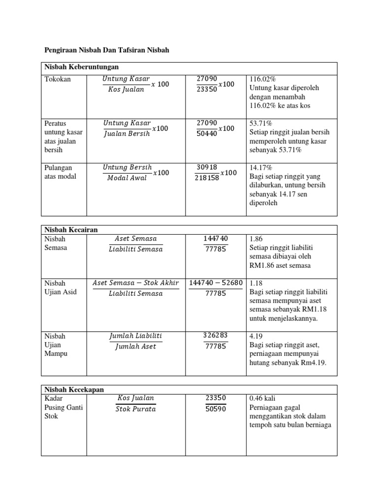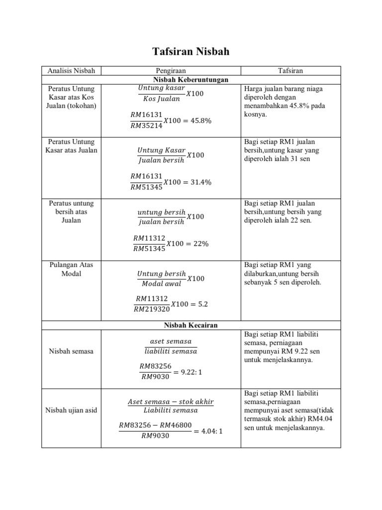 Pengiraan Nisbah Dan Tafsiran Nisbah Pdf